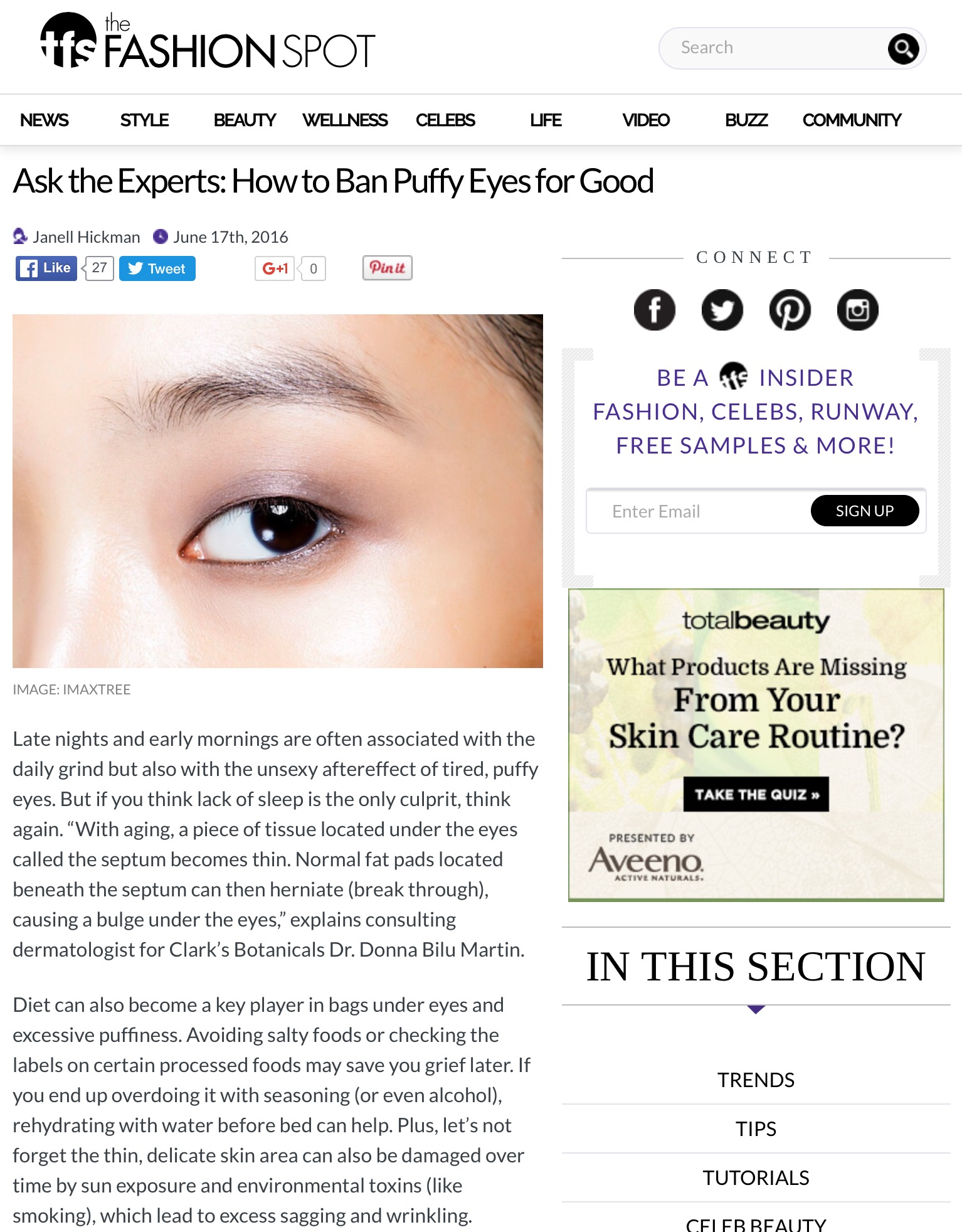 Donna Bilu Martin, MD weighs in on the causes and treatment of puffy eyes on thefashionspot.com