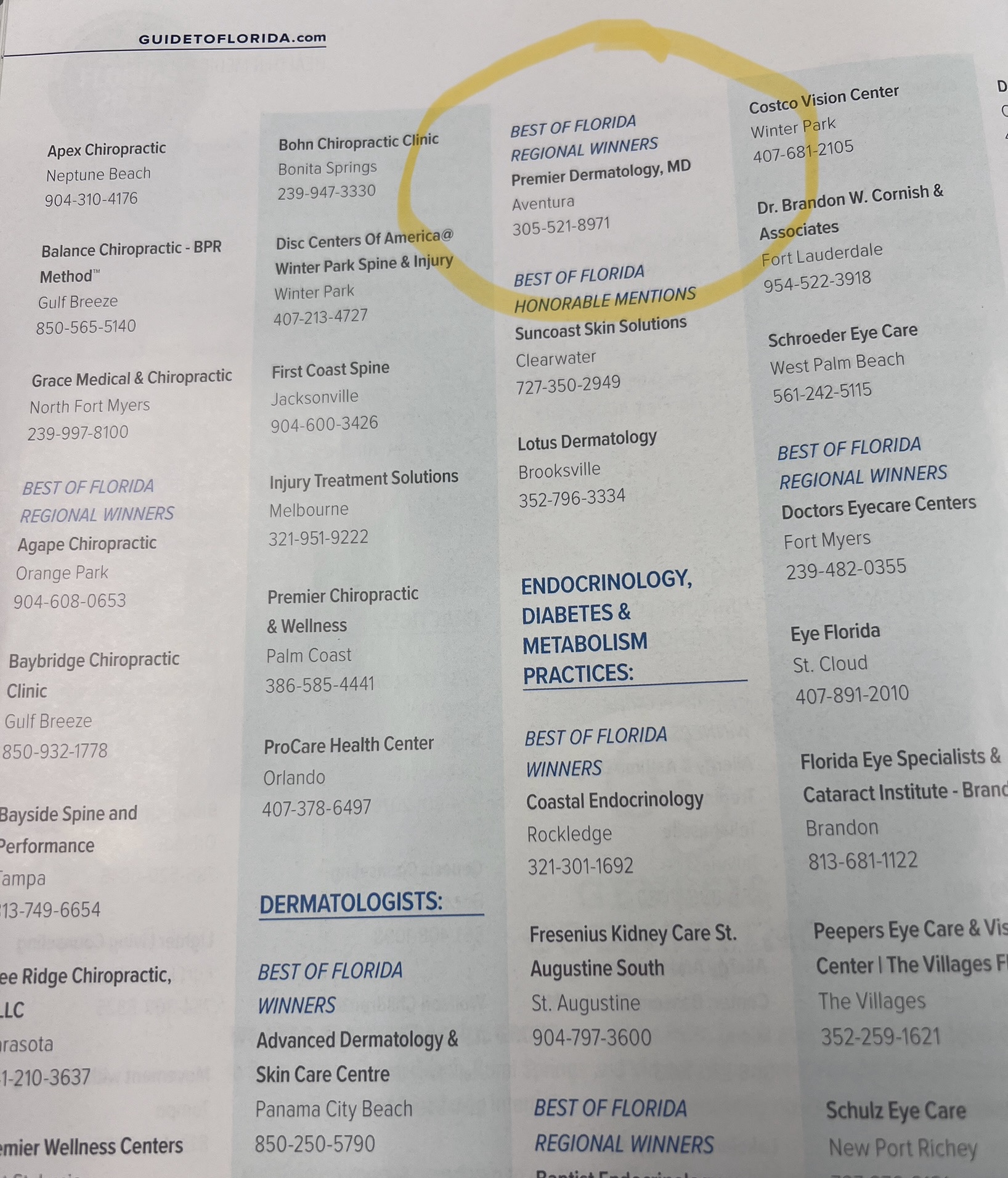 Premier Dermatology, MD is named regional winner in Best of Florida